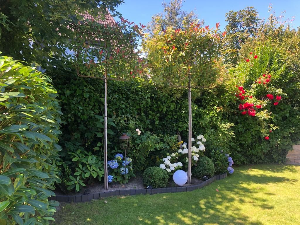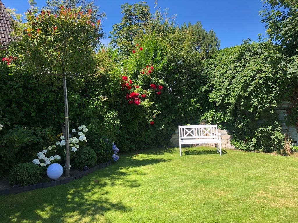 Vom Wohnzimmer aus haben unsere Gäste direkten Zugang zu zwei Terrassen, wovon eine vollständig überdacht und zu drei Seiten geschlossen ist. Die mit Lounge-Möbeln ausgestattete Frühstücksterrasse ist das Highlight des Gartens und hat unseren Urlaubern stets besonders gut gefallen. Ein schöner Garten mit voller Südausrichtung schließt sich natürlich direkt an. Zwei weitere Sonnenterrassen sind ebenfalls mit hochwertigen Möbeln, Liegen, Strandkorb und Sonnenschirm ausgestattet. Der Garten verfügt über eine Rasenfläche zum Spielen und ist nicht einsehbar. Parkplätze sind zudem vor dem Haus in einer Vielzahl vorhanden.